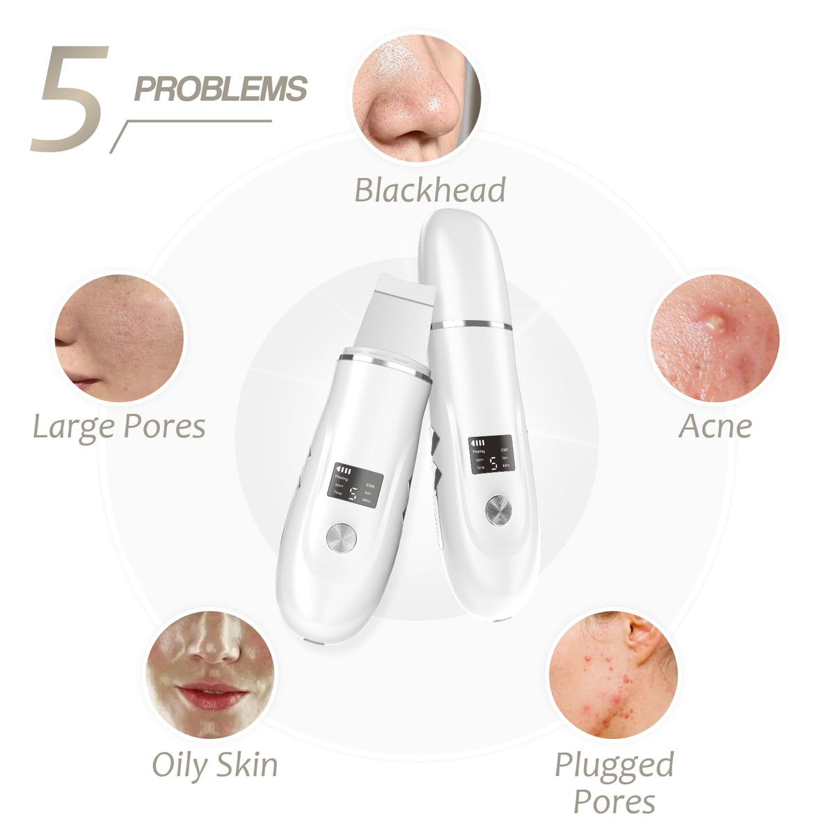 Skin Scrubber Face Spatula, Face Spatula Blackhead Remover for Deep Cleansing Skin Spatula, 4 in 1 Pore Extractor with USB Charger (Large)