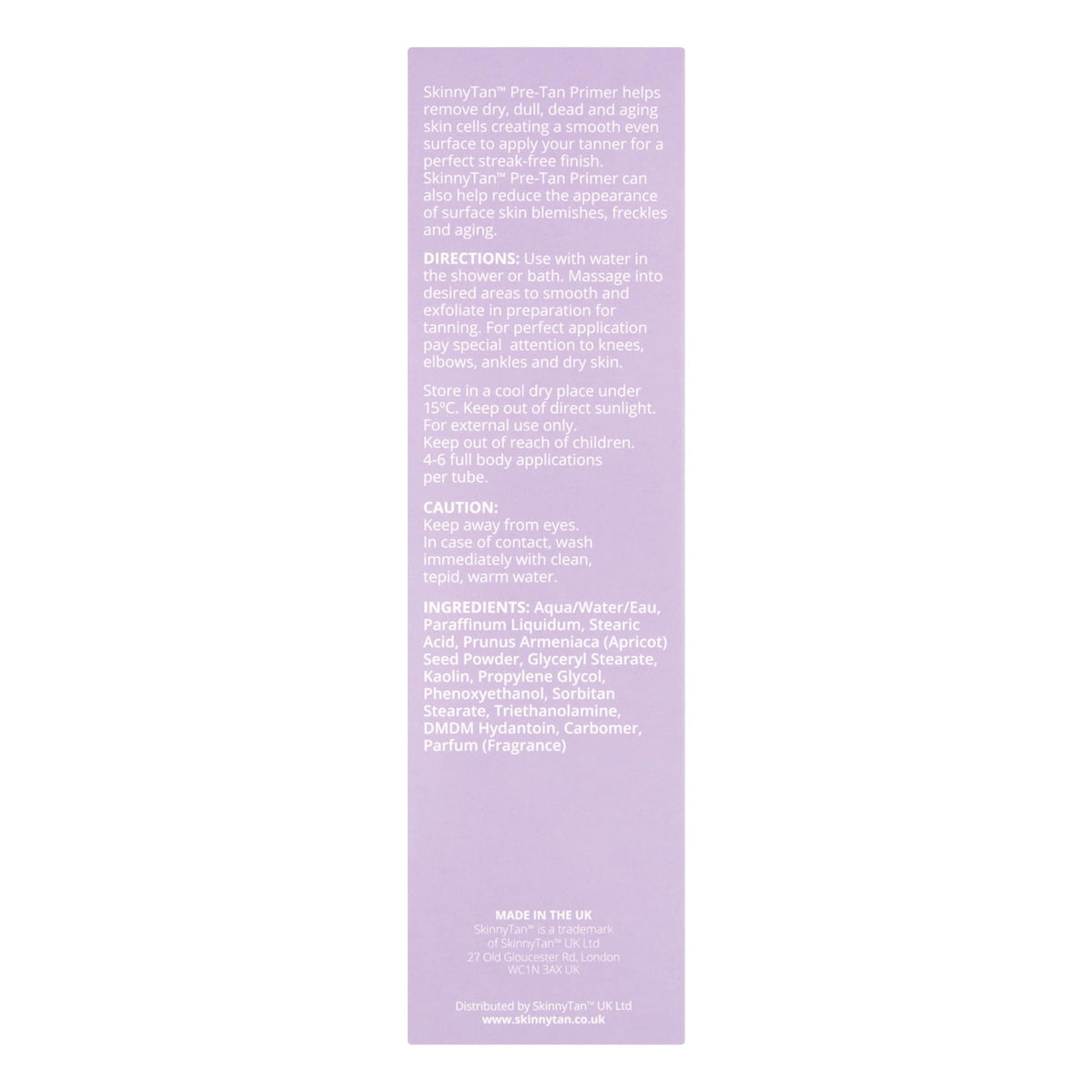 Prepare your skin for a flawless tan with SkinnyTan Pre-Tan Primer. This 4.2 oz exfoliator with gentle apricot seed powder leaves your skin brighter and smoother.