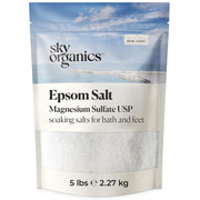 Sky Organics - Epsom Salt Bath Soak, 5 lbs - Magnesium Sulfate USP - 100% Pure, Medium Grain - Unscented - Soaking Bath Salts - Resealable Bag - Natural, Vegan & Cruelty Free - Self Care - Bath & Feet