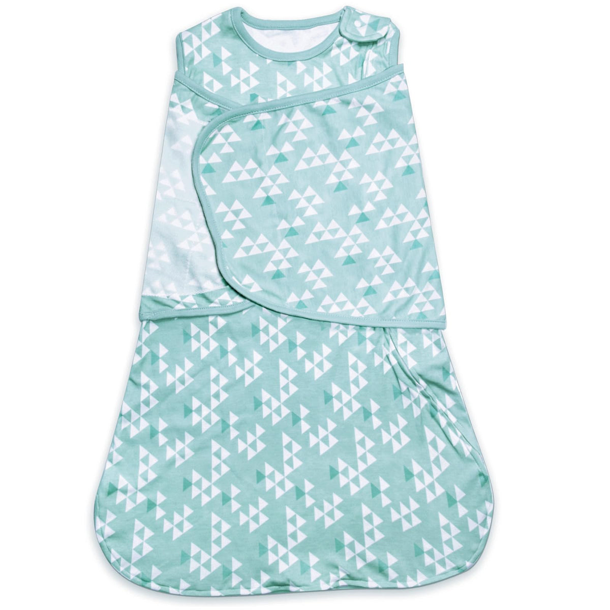 Sleepsack Swaddle is an adjustable wearable baby sleep sack designed for babies aged 6-12 months, offering a cozy and secure swaddling experience for peaceful and safe sleep, crafted from 100% cotton in a vibrant green color.