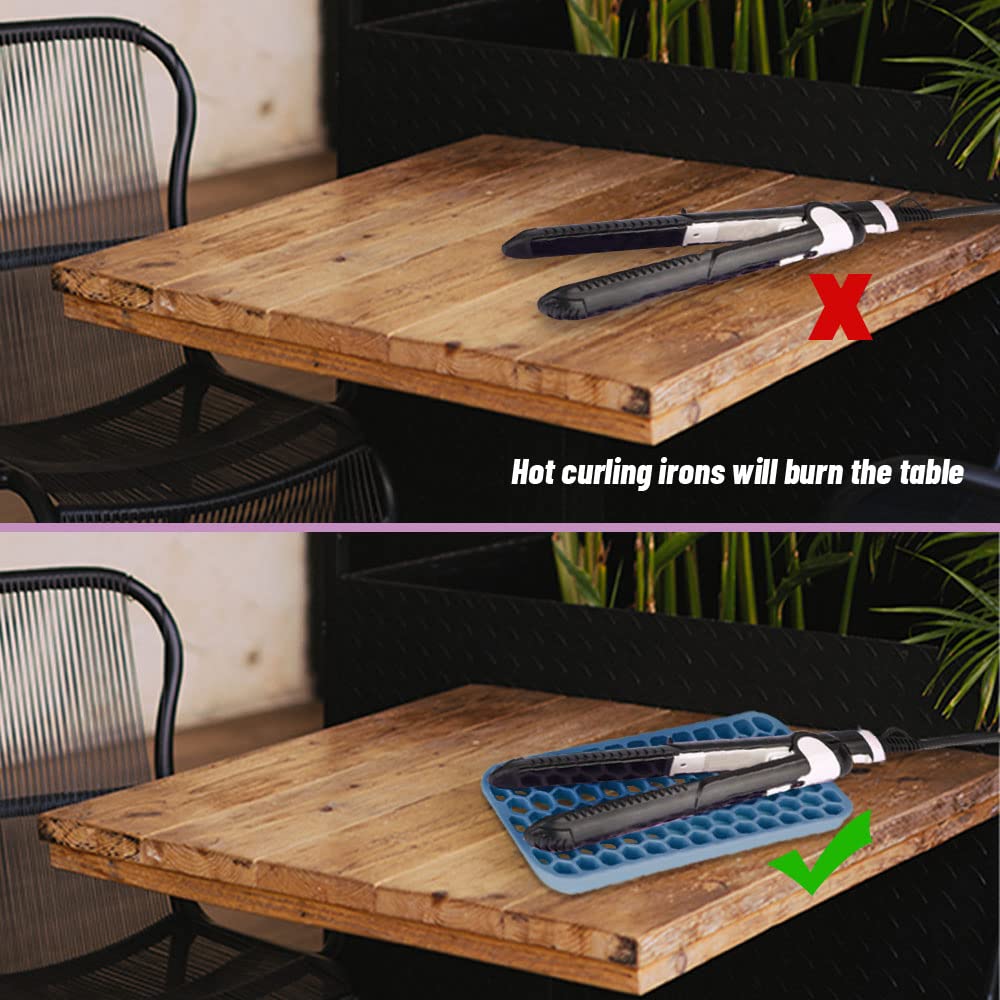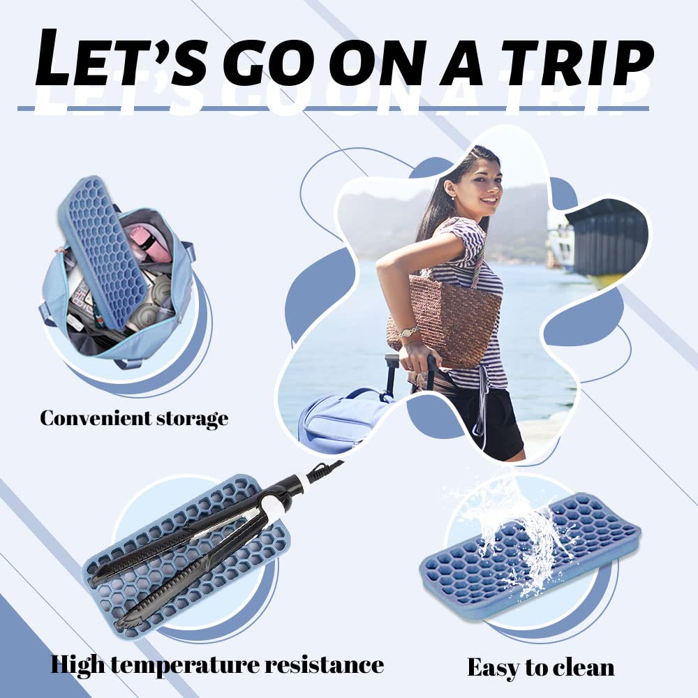 Small Silicone Pad for Curling Iron is a heat-resistant mat designed to protect surfaces from hot hair tools. This portable styling tool rest holder is perfect for straighteners, hair dryers, and flat irons, offering convenience and safety during styling.