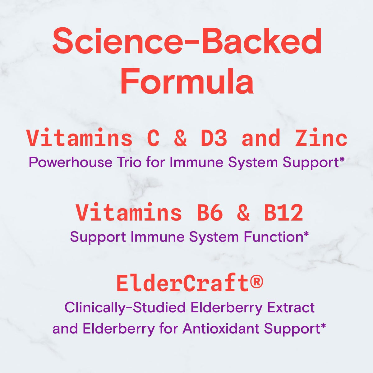 SmartyPants Kids Immunity Elderberry Gummies provide essential immune support for kids. These Elderberry flavored gummies contain Vitamin C, D, B6, B12, and Zinc for overall health.