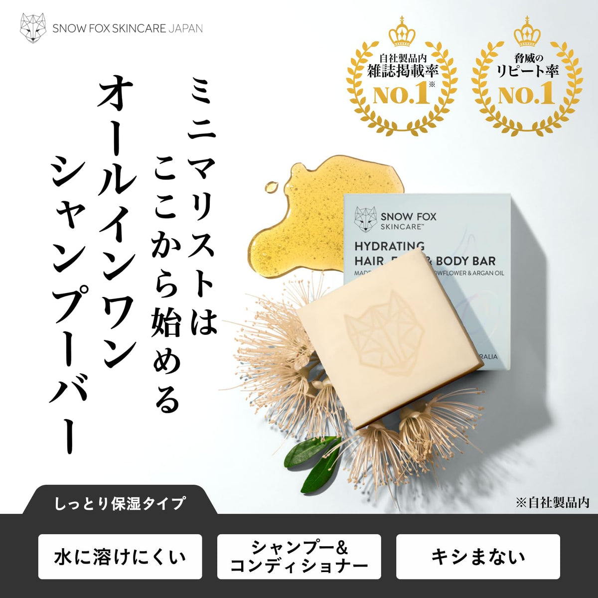 Snow Fox Skincare Hydrating Hair, Face & Body Bar | Shampoo & Conditioner Bar | Restores Moisture, Shine, Softness | Shea Butter & Argan Oil | Australian Botanicals | Portable & Sustainable, 2.8 oz.