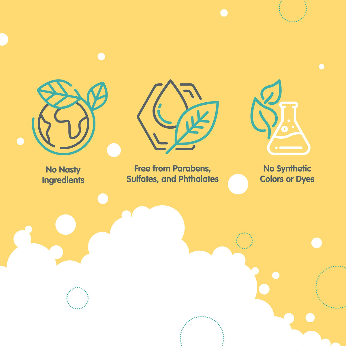 | product benefit | Gently cleans and conditions hair, Body cleansers scrub away dirt, Sily shine from plant extracts and hydrating proteins, No Nasty Ingredients, Piece of cake to get Kids clean |