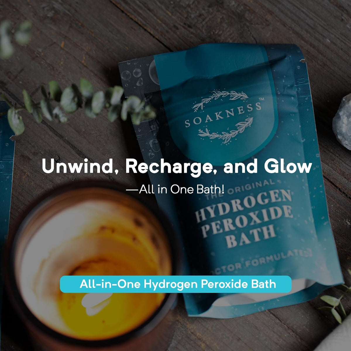 Revitalize your body with Soakness Hydrogen Peroxide Epsom Salt Bath Soak. Made in the USA, this patented bath salt blend offers muscle recovery and skin detoxification, providing a rejuvenating bathing experience.