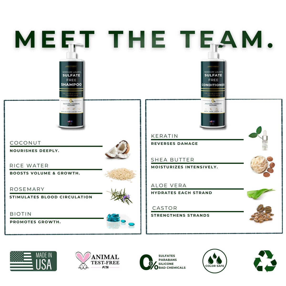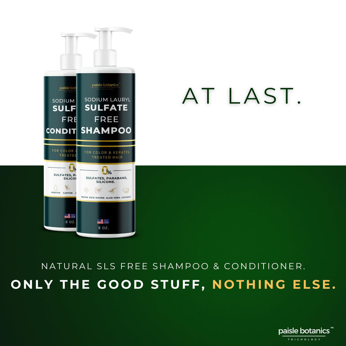 Sodium Lauryl Sulfate Free Shampoo and Conditioner Set Sulfate Free Shampoo and Conditioner For Color Treated Hair ALL NATURAL Women & Men Shampoo and Conditioner SLS Paraben and Sulfate Free Shampoo