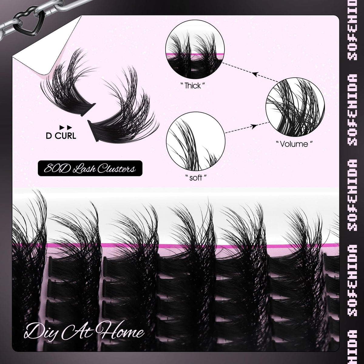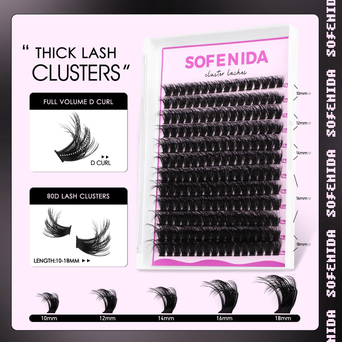 SOFENIDA Lash Clusters Kit offers 100D thick cluster lashes in D curl. This volume eyelash clusters kit includes 3D wispy lash clusters for a dramatic and glamorous look. The DIY lash extension kit allows you to customize your lash length and volume effortlessly.