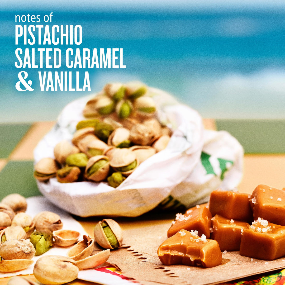 Key notes of pistachio, salted caramel, vanilla
