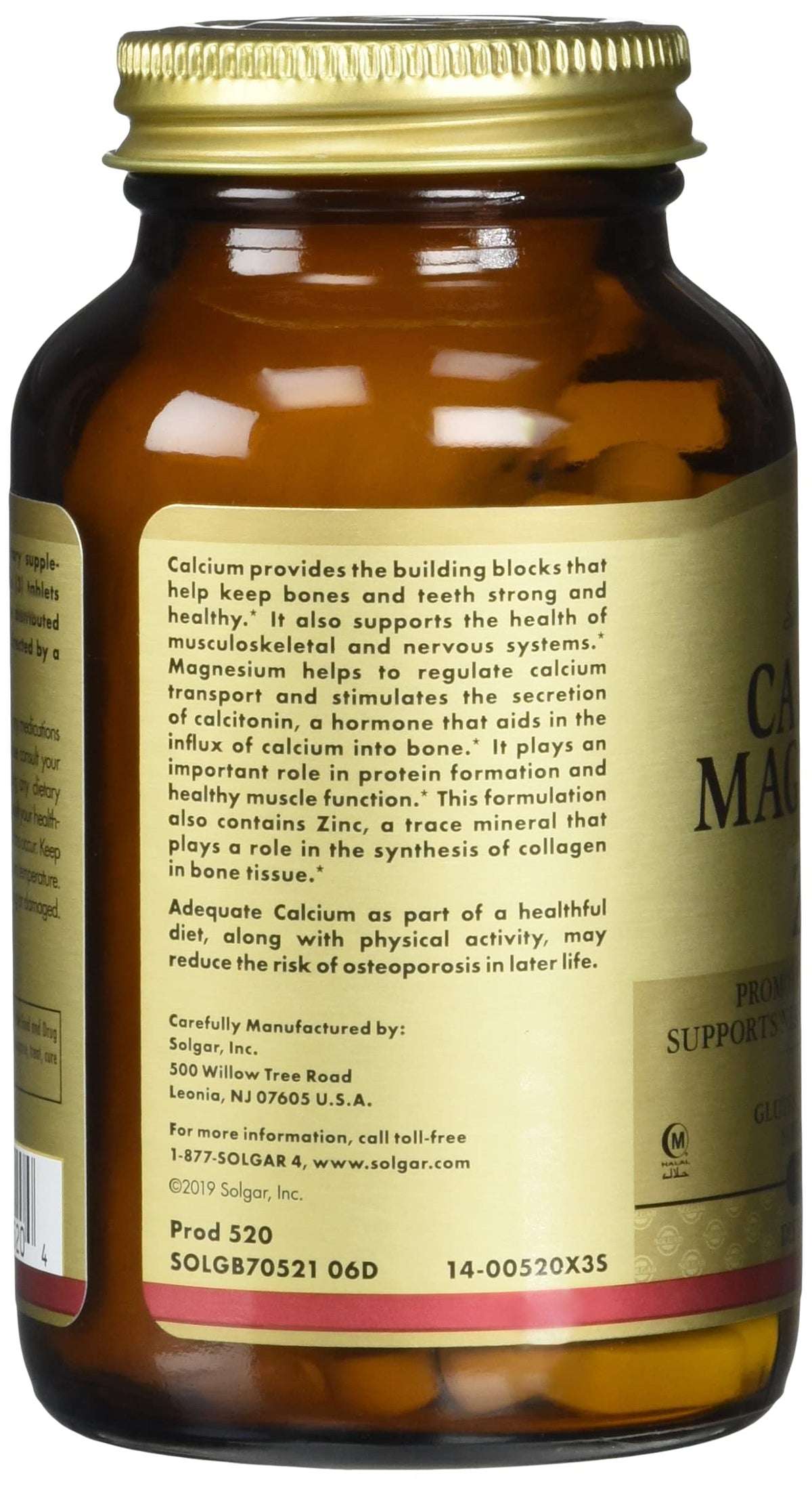 Solgar Calcium Magnesium Plus Zinc, 100 Tablets - Healthy Bones and Teeth - Nerve & Muscle Function, 100 Count (Pack of 12)