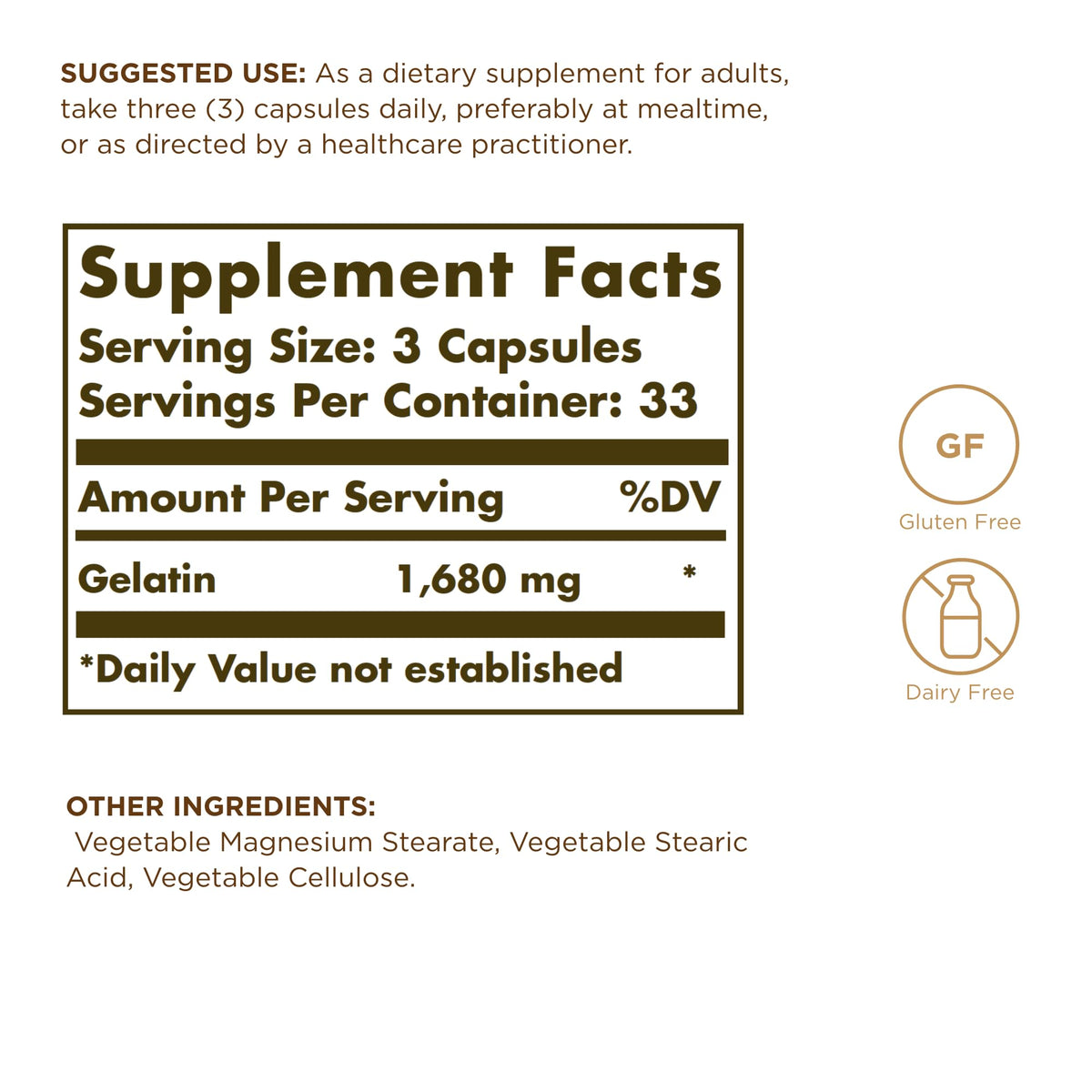 Solgar Gelatin 1680 mg, 100 Capsules - Natural Gelatin - Supports Bone, Joint & Skin Health - Gluten Free, Dairy Free - 33 Servings