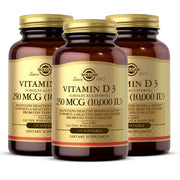 Solgar Vitamin D3 (Cholecalciferol) 250 MCG (10,000 IU), 120 Softgels - 3 Pack - Helps Maintain Healthy Bones & Teeth - Immune System Support - Non-GMO, Gluten Free, Dairy Free - 360 Total Servings