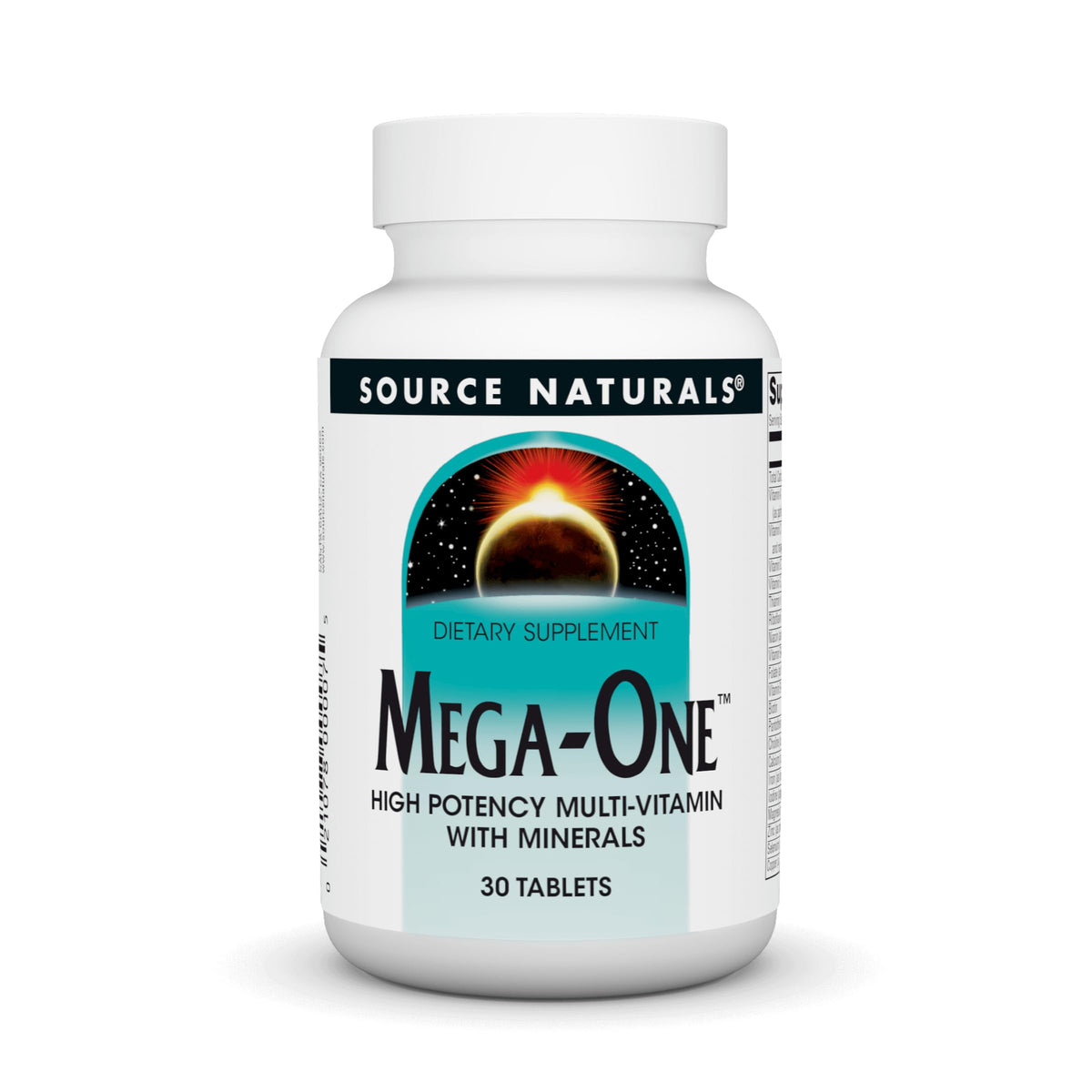 Source Naturals Mega-One Multi-Vitamin with Minerals is a comprehensive daily multivitamin. Each bottle contains 30 tablets.