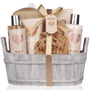 Indulge in a spa-like experience with the Spa Gift Basket by Lovestee. This luxurious set with a vanilla fragrance includes shower gel, body lotion, hand lotion, bath salt, Eva sponge, and a bath puff for a pampering self-care routine.