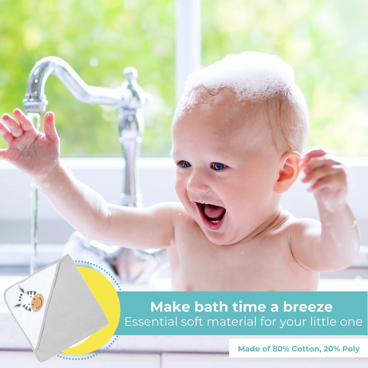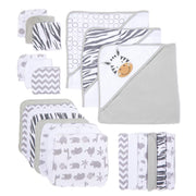 Spasilk 23-Piece Soft Terry Hooded Bath Towel and Washcloth Gift Set, 3 Baby Towels and 20 Baby Washcloths for Unisex Newborn Bath Essentials, Ideal, White Zebra