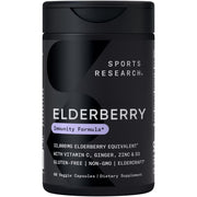 Boost your immune system with Sports Research Black Elderberry capsules. Packed with Zinc, Vitamin C, and Vitamin D, this supplement is designed to support your body's defense mechanisms.