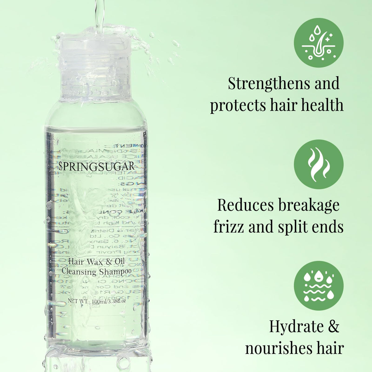 Springsugar Hair Wax Stick Cleaning Shampoo for all hair types. Deep cleans and easily removes hair wax, gel, clay, and spray residues. 3.38 FL OZ bottle for effective styling product removal.