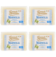 Spuma di Sciampagna "Marsiglia" Natural Soap with Antibacterial properties comes in a pack of 4 bars, each weighing 4.40 ounces (125g). This soap is ideal for various uses including face, body, hair, laundry, pets, and dishes. The antibacterial formula ensures cleanliness and freshness in every application.