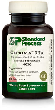 Improve cognitive health with Standard Process Inc. Olprima DHA. This whole food supplement contains Omega 3 from tuna fish oil, DPA & DHA with Astaxanthin for enhanced brain function & heart health.