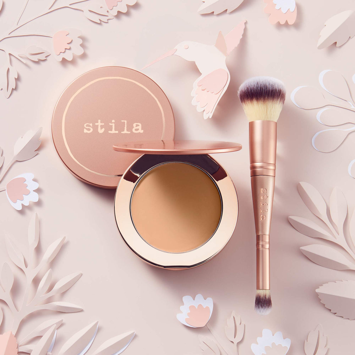 Achieve flawless complexion with stila Double-Ended Complexion Brush. This versatile brush ensures seamless application of makeup for a professional finish.