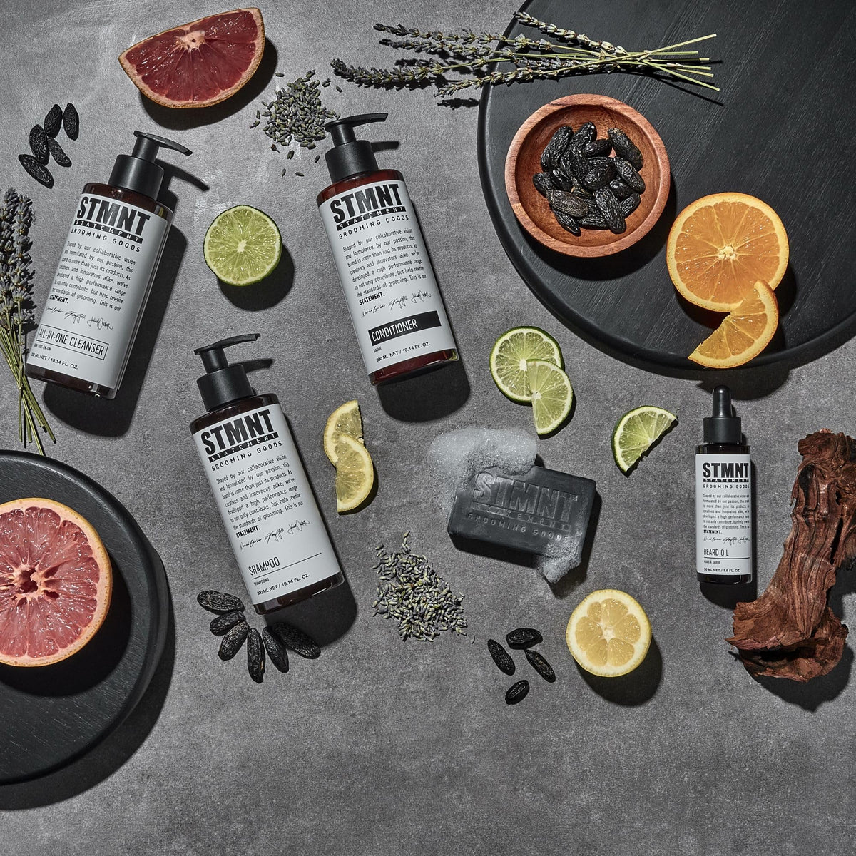 Revitalize your hair with STMNT Grooming Goods Conditioner. This 9.3 oz formula softens, restores shine, and moisturizes with activated charcoal and menthol, suitable for all hair types.