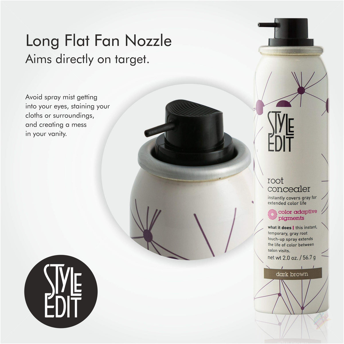 Style Edit Root Concealer Touch Up Spray instantly covers grey roots with a professional salon-quality formula. This dark brown pack of 3 offers a quick and easy solution for root touch-ups