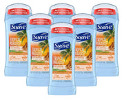 Suave Deodorant Tropic Paradise Invis. Solid offers 24-hour protection with a refreshing tropical scent. This pack of 6 deodorant sticks ensures long-lasting freshness and invisible protection against odor and wetness.