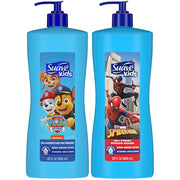 Make Bath Time Fun and Easy with Suave Kids 3-in-1 Variety 2-Pack. This set includes Spiderman Fresh Spider-Sense & Paw Patrol Adventure Bay Breeze, offering a delightful shampoo, conditioner, and body wash combo in 28 Oz bottles each.