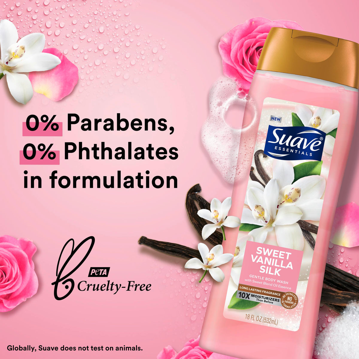 Suave Moisturizing Body Wash Women, Sweet Vanilla with Vitamin E and Aloe Extracts, No Parabens, No Phthalates, 18 Oz (Pack of 6)