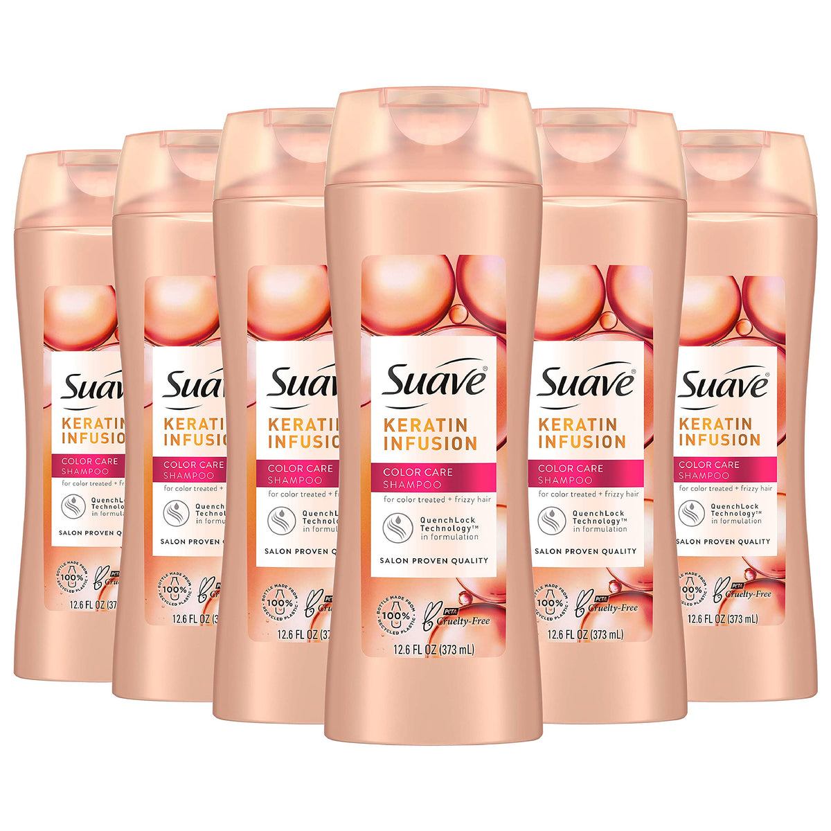 Experience color care like never before with Suave Professionals Shampoo Keratin Infusion. This pack of 6, 12.6 oz bottles ensures your colored hair stays vibrant and nourished. Enjoy long-lasting color and silky smooth hair with every wash.
