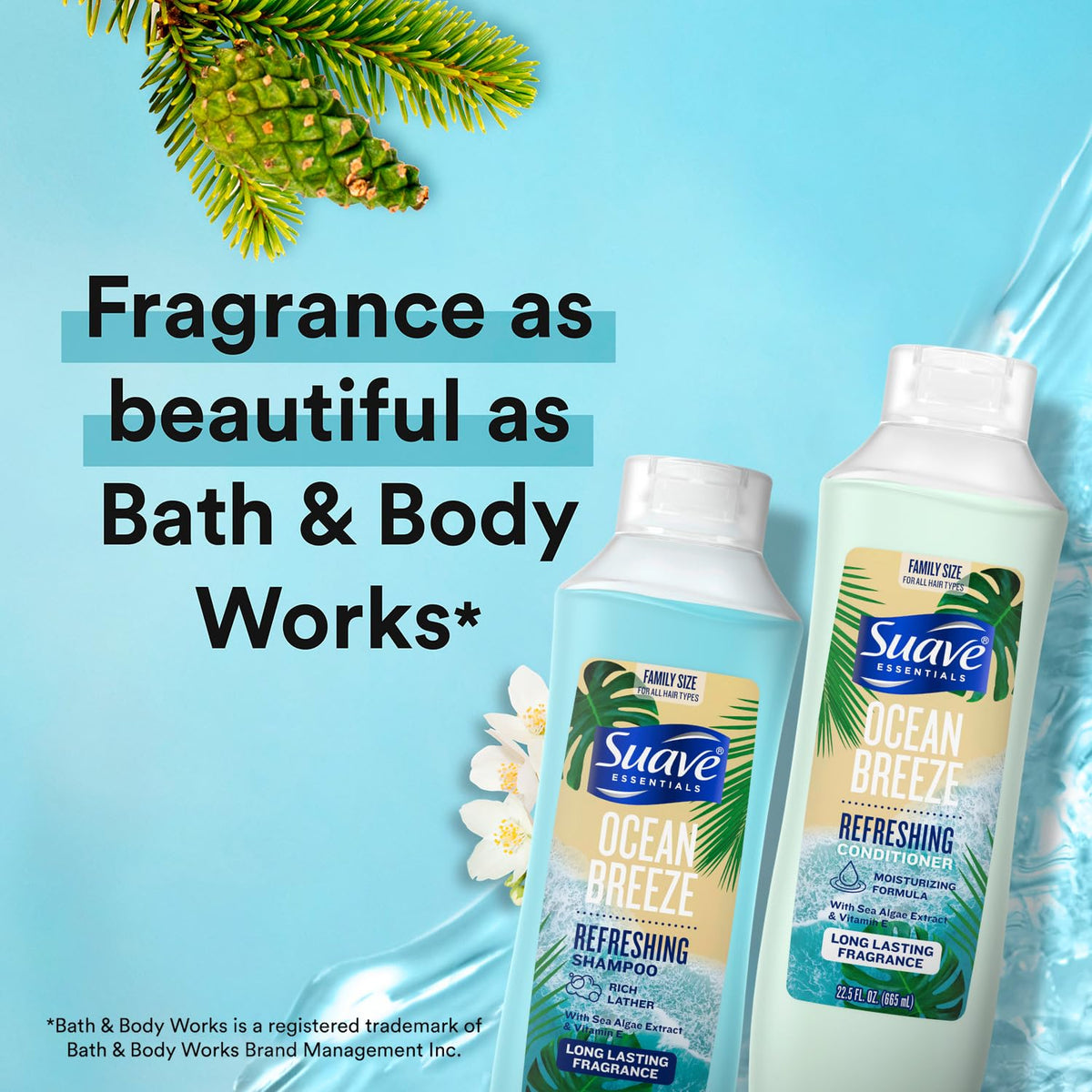 Suave Shampoo & Conditioner Set, Ocean Breeze – Everyday Refreshing Formulas with Sea Algae Extract & Vitamin E, 22.5 Oz Ea (2 Piece Set)