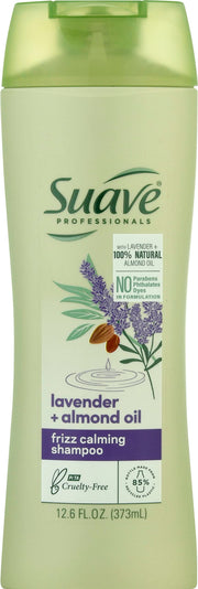 Indulge in the calming Lavender Almond Oil scent with Suave Shampoo. This 12.6 Fl Oz bottle cleanses and nourishes your hair for a refreshing experience.
