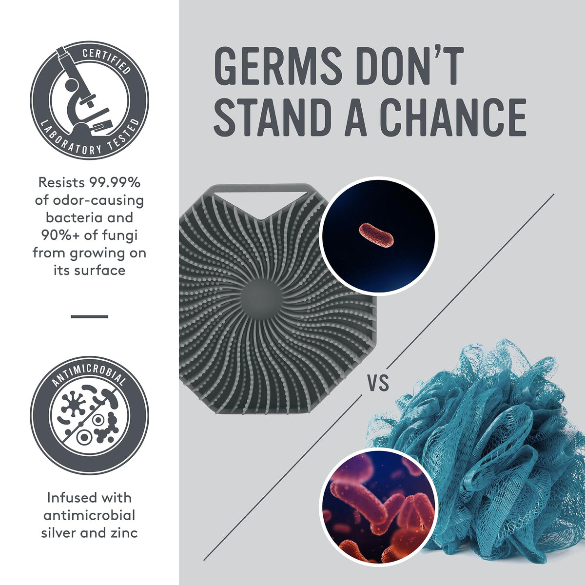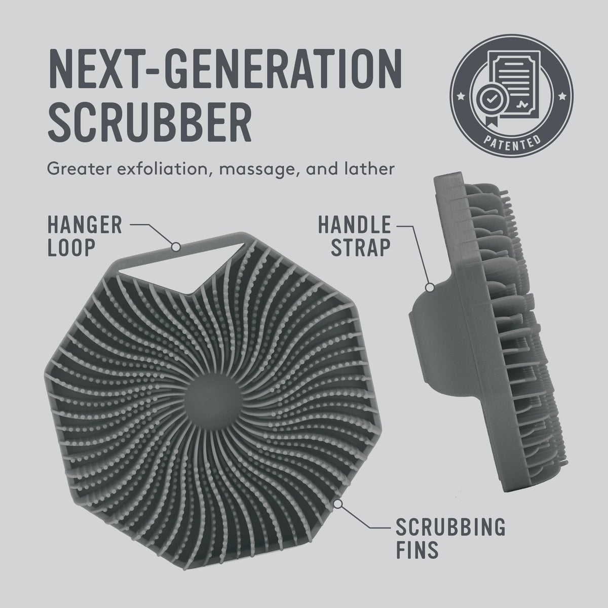 Sud Scrub® Antimicrobial Silicone Body Scrubber, Exfoliating Body Scrubber for Sensitive Skin, Eco Friendly Shower Scrubber for Body, Silicone Body Brush for Showering, Charcoal