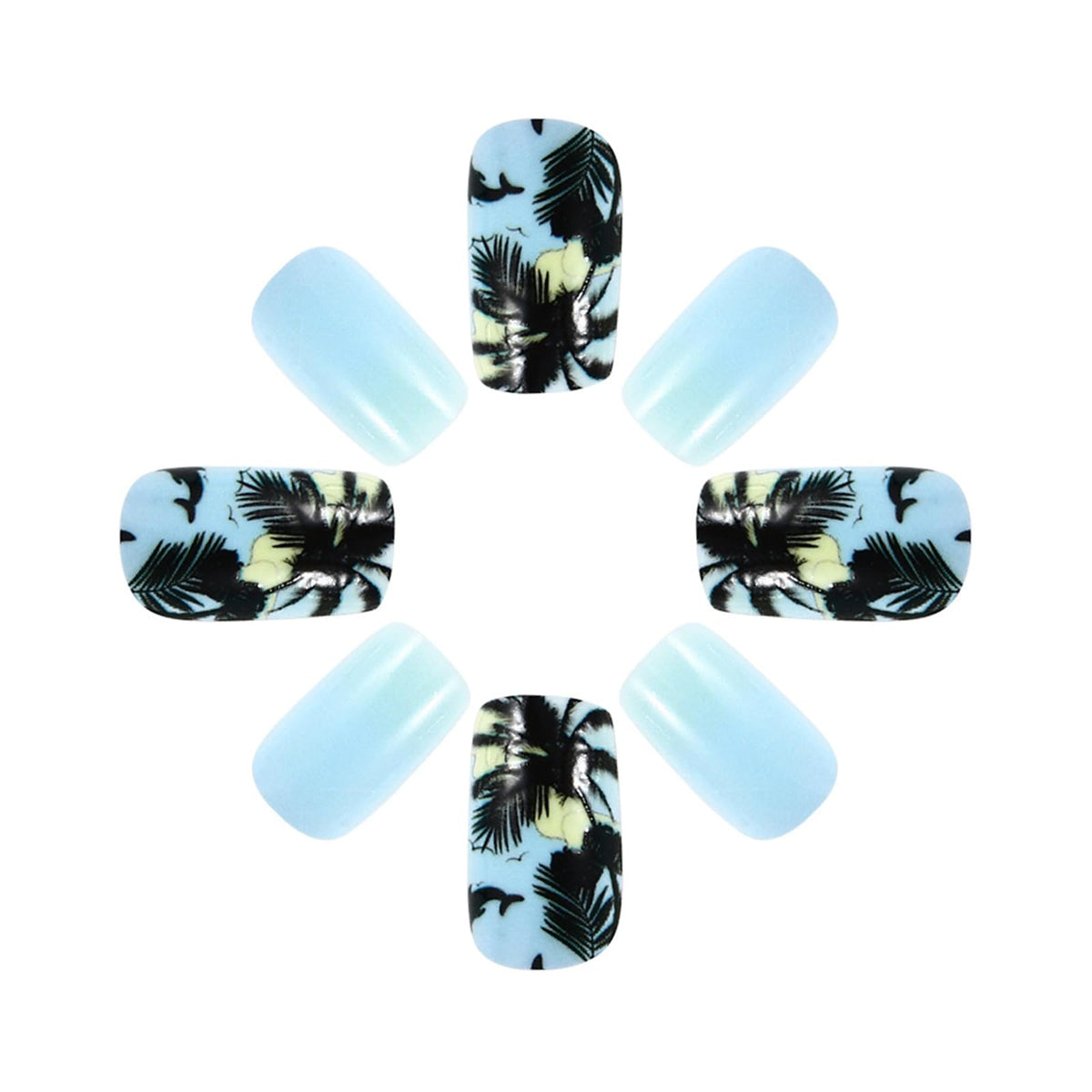 Bring the beauty of the beach to your fingertips with Summer Press on Nails. This set of medium square fake nails features captivating designs like Coconut Tree, Starfish, and Blue Seagull, offering a tropical escape right at home.