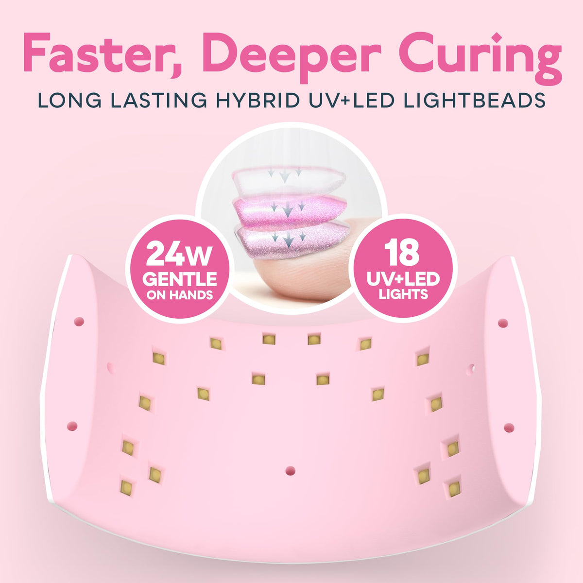 The SUNUV SUN9C 24W LED UV Nail Dryer Curing Lamp in Pink is a professional nail dryer that efficiently cures both fingernail and toenail gels based polishes, ensuring a long-lasting and glossy finish.