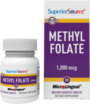 Superior Source Methylfolate 5-MTHF 1000 mcg, Quick Dissolve MicroLignual Tablets, 60 Ct, Biologically Active Form of Folate, Cardiovascular Health, Energy Metabolism & Prenatal Development, Non-GMO