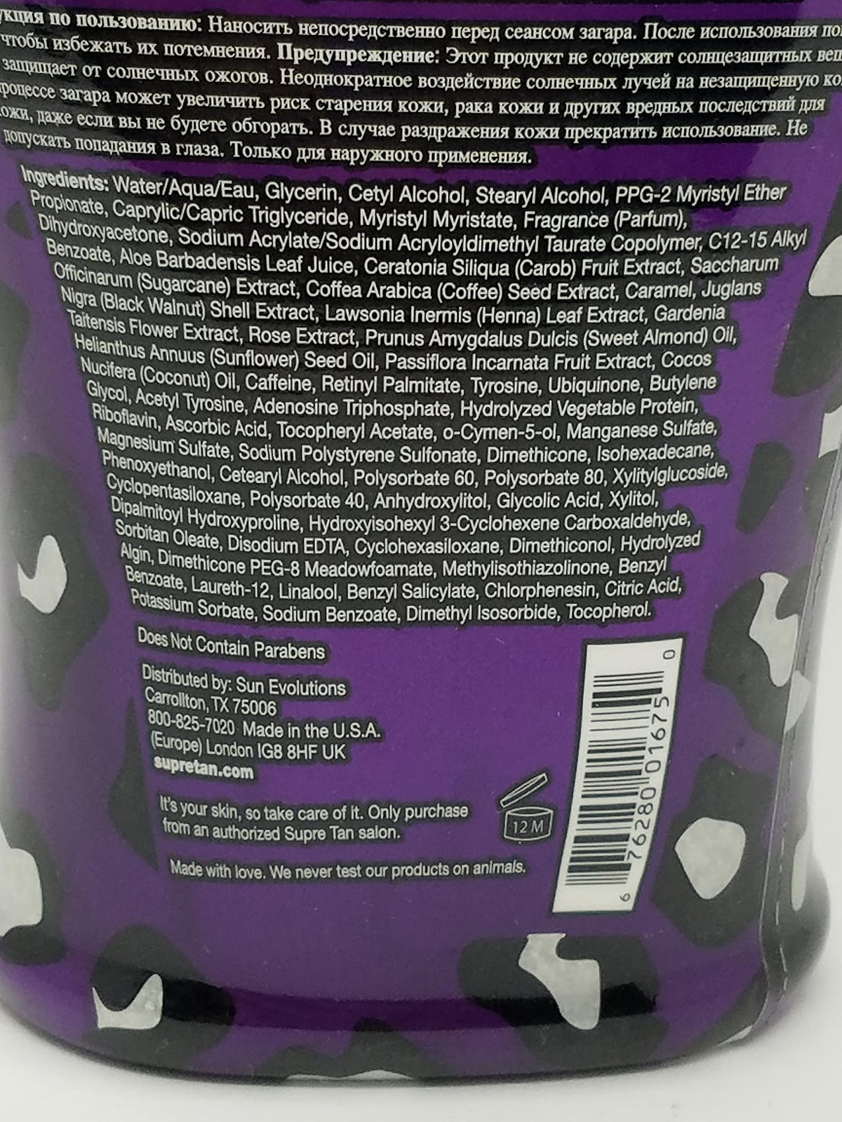 Get that perfect dark tan with Supre - Snooki Ultra Dark 70X Black Bronzer. This bronzer not only gives you a deep tan but also helps firm and tone your skin, leaving you with a radiant glow.