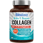 Experience the power of Surebounty Multi Collagen Complex, a 6-in-1 super collagen supplement designed for joint health and overall well-being. This supplement combines Type I, II, III collagen with Vitamin C, Hyaluronic Acid, Biotin, Turmeric, and Black Pepper for comprehensive support.