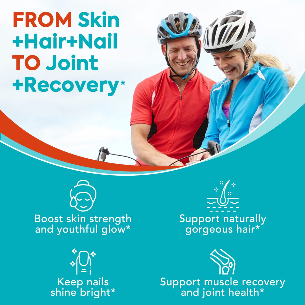 Ingredients: Type I, II, III Food Source Collagen, Turmeric, Black Pepper, Vitamin C, Hyaluronic Acid, Biotin.