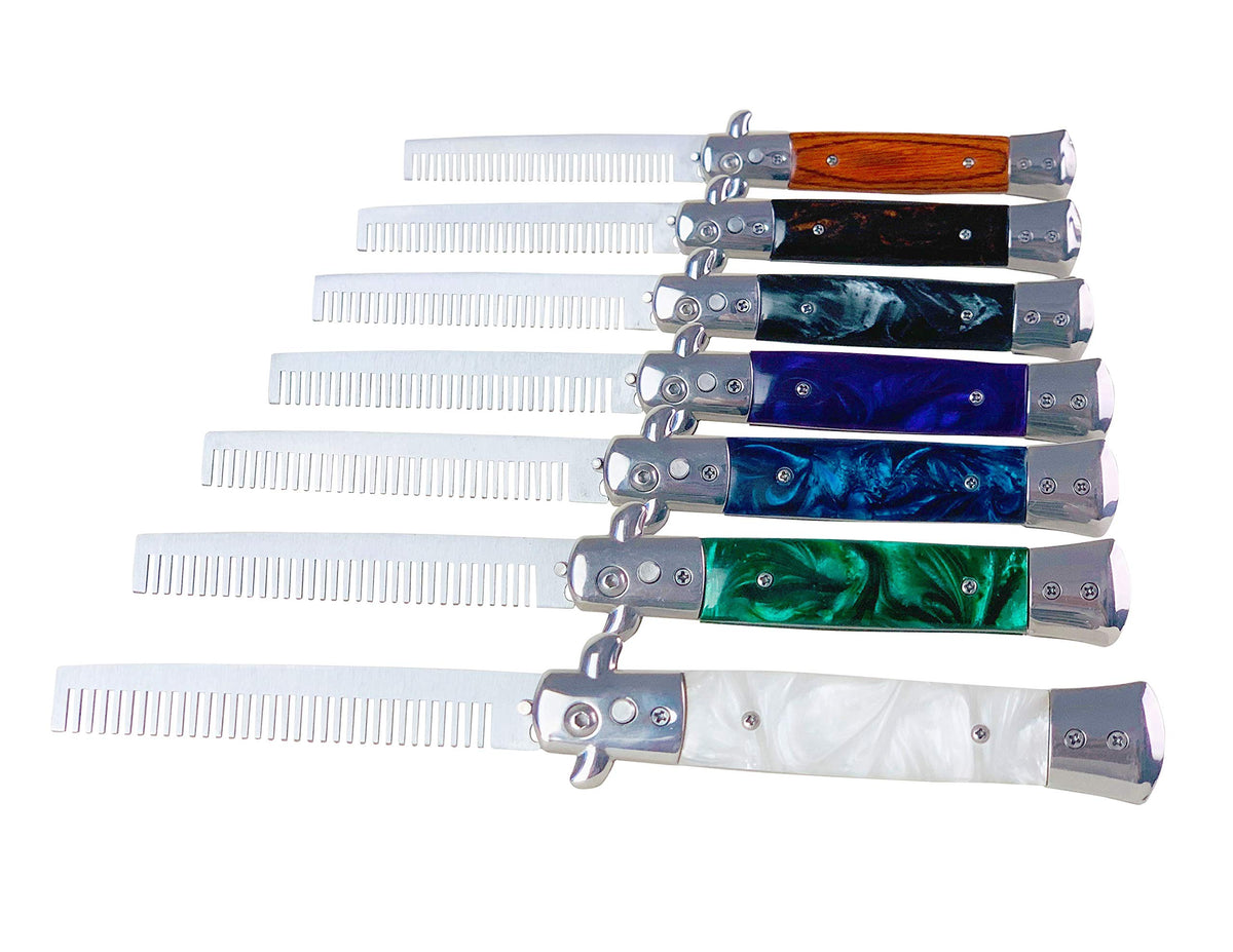 Switchblade Comb Pocket Knife Hair Brush is a versatile grooming tool that combines functionality and style. Its automatic folding design makes it convenient for on-the-go styling.