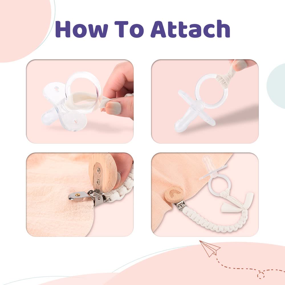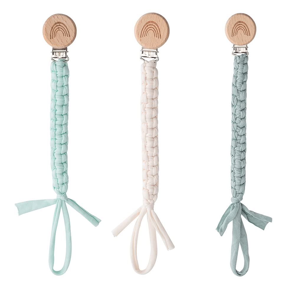 Symbolife Pacifier Clip for Boys Girls Pacifier Holder Leash Boho Rainbow Wooden Clips Handmade Braided Cotton Unisex Baby Shower Birthday Gift Christmas Gift
