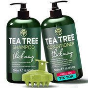 Revitalize your hair and scalp with Tea Tree Shampoo & Conditioner Set. This sulfate and paraben-free duo is specially formulated to combat hair loss, soothe scalp issues, and promote healthy hair growth for both men and women.