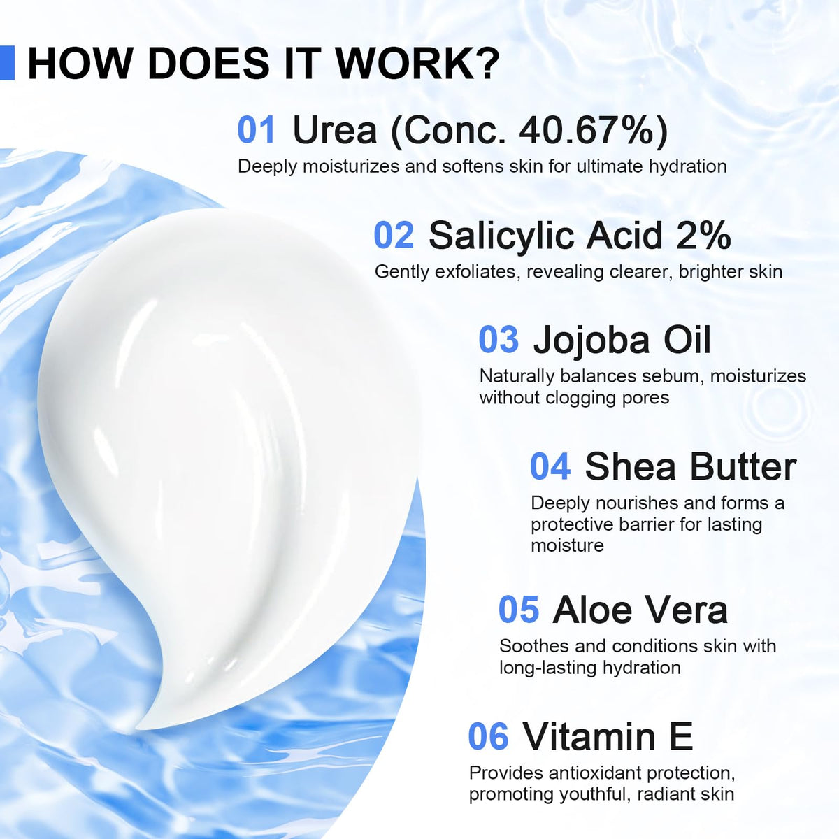 TEAWOO Ultra-Hydrating Foot Cream (Urea Conc. 40.67%), Foot Cream for Dry Cracked Heels and Feet, Pair with Moisturizing Heel Socks for Cracked Heel Treatment, Heel Socks Included (5.29 OZ/150g)