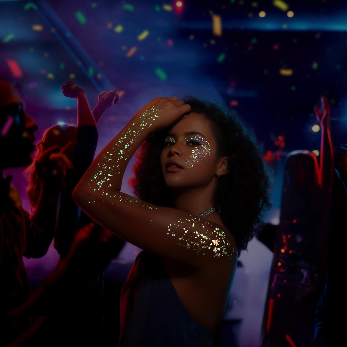 Add a touch of sparkle with Teenitor 12 Colors Glow in The Dark Glitter Gel. This versatile gel can be used on the face, body, and hair, perfect for creating dazzling UV black light makeup looks at raves and festivals.