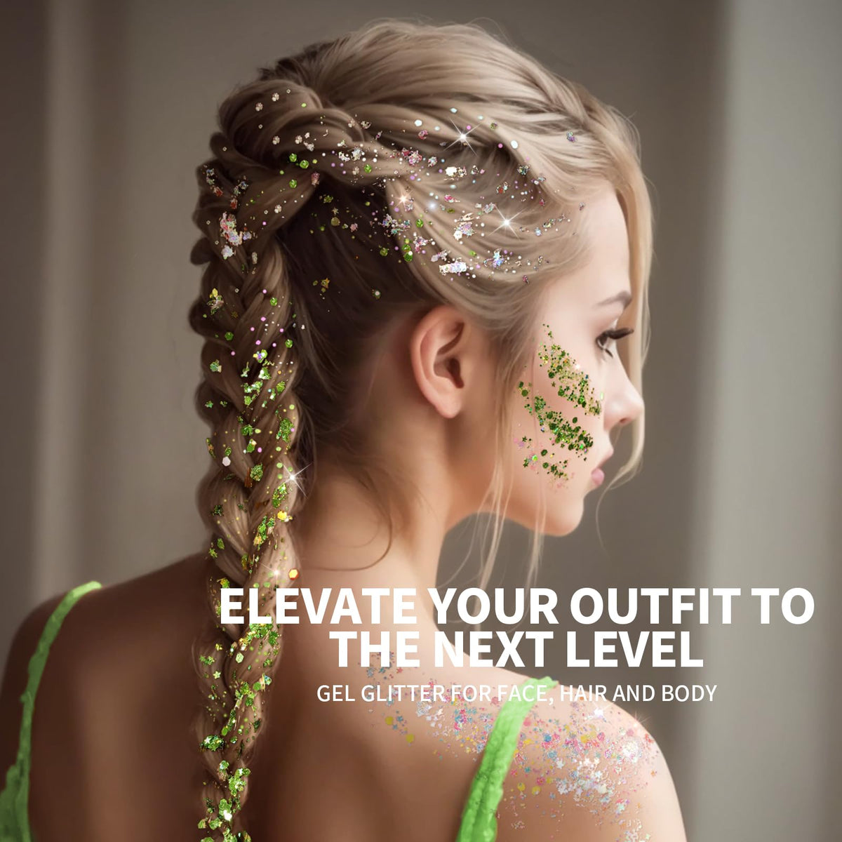 Teenitor Face Glitter Makeup Hair Glitter, 12 Colors Face and Body Glitter Gel for Festival Makeup, Gel Glitter for Face, Body, Hair, Total 120g/4.23oz