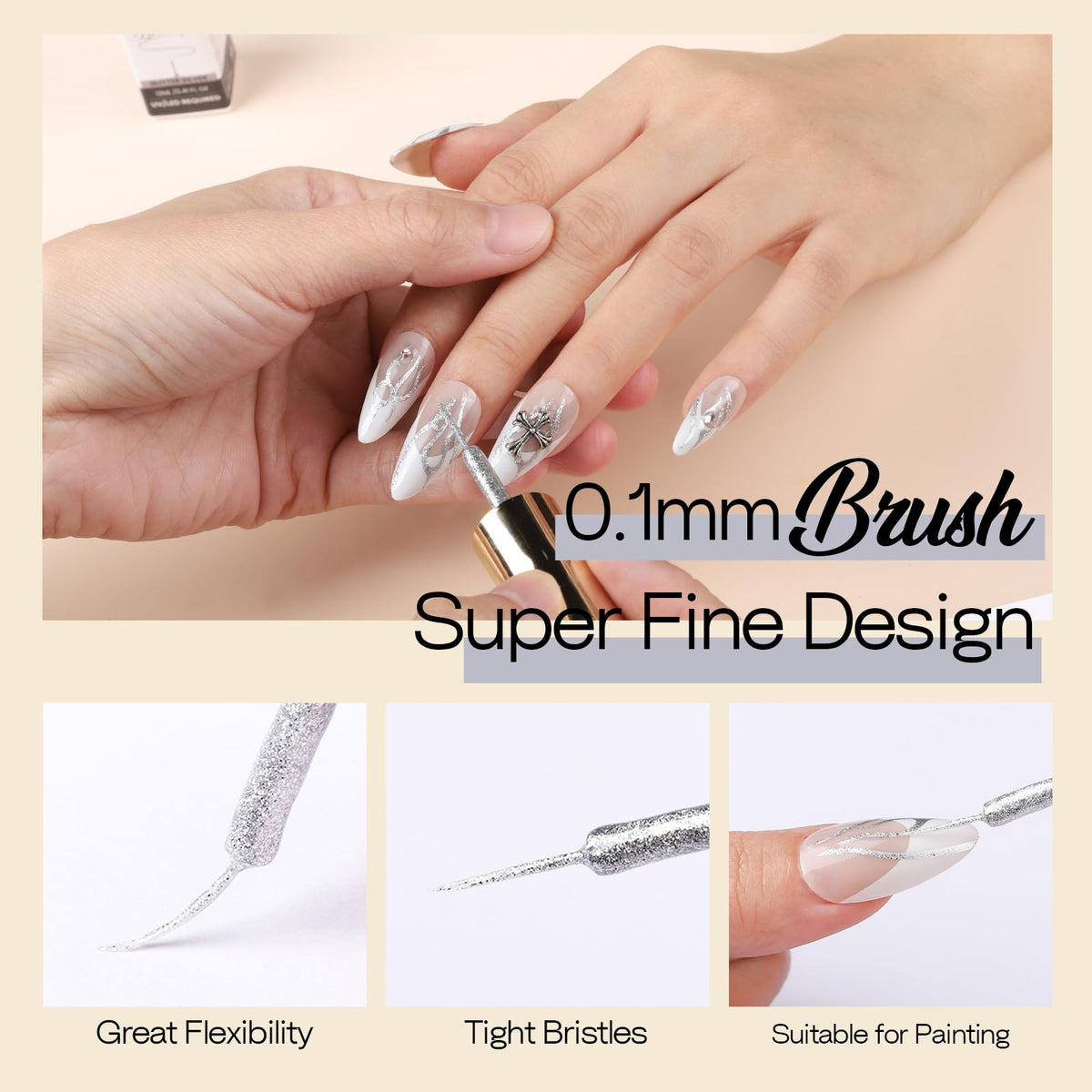 Teenitor Gel Nail Polish Set offers 4 colors of liner gel polish, including black, white, glitter gold, and silver, perfect for creating intricate nail art designs with ease.