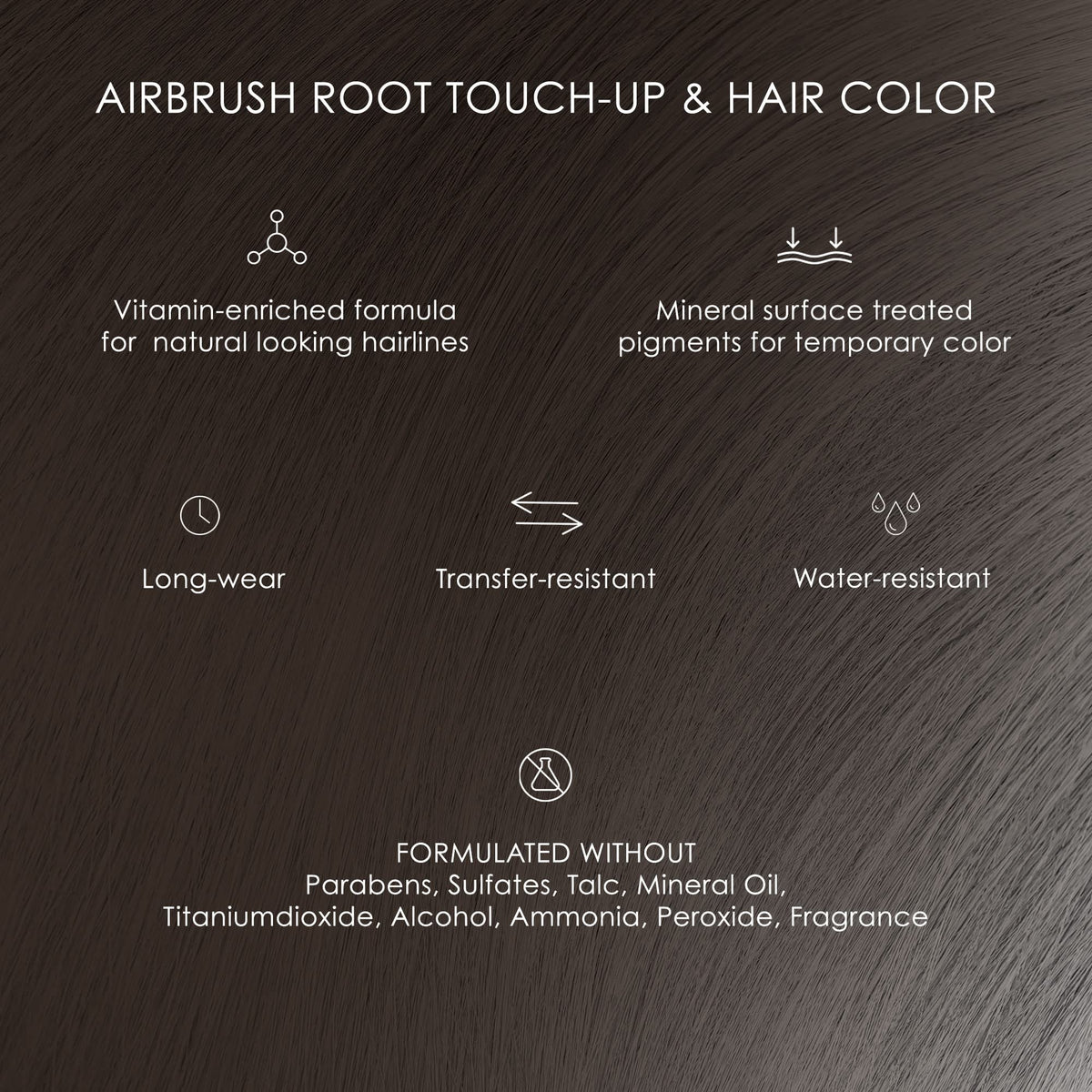 Touch up your roots and hair color with Temptu Airbrush Root Touch-Up & Hair Color in Dark Brown. This easy-to-use airbrush formula provides seamless coverage for root touch-ups and hair coloring. Achieve a flawless look with professional results.