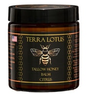 Experience luxurious skincare with Terra Lotus Organic Grass-Fed Beef Tallow Balm enriched with raw honey. This moisturizing cream offers soft, smooth skin with a refreshing citrus scent, crafted from all-natural ingredients for a pampering experience.