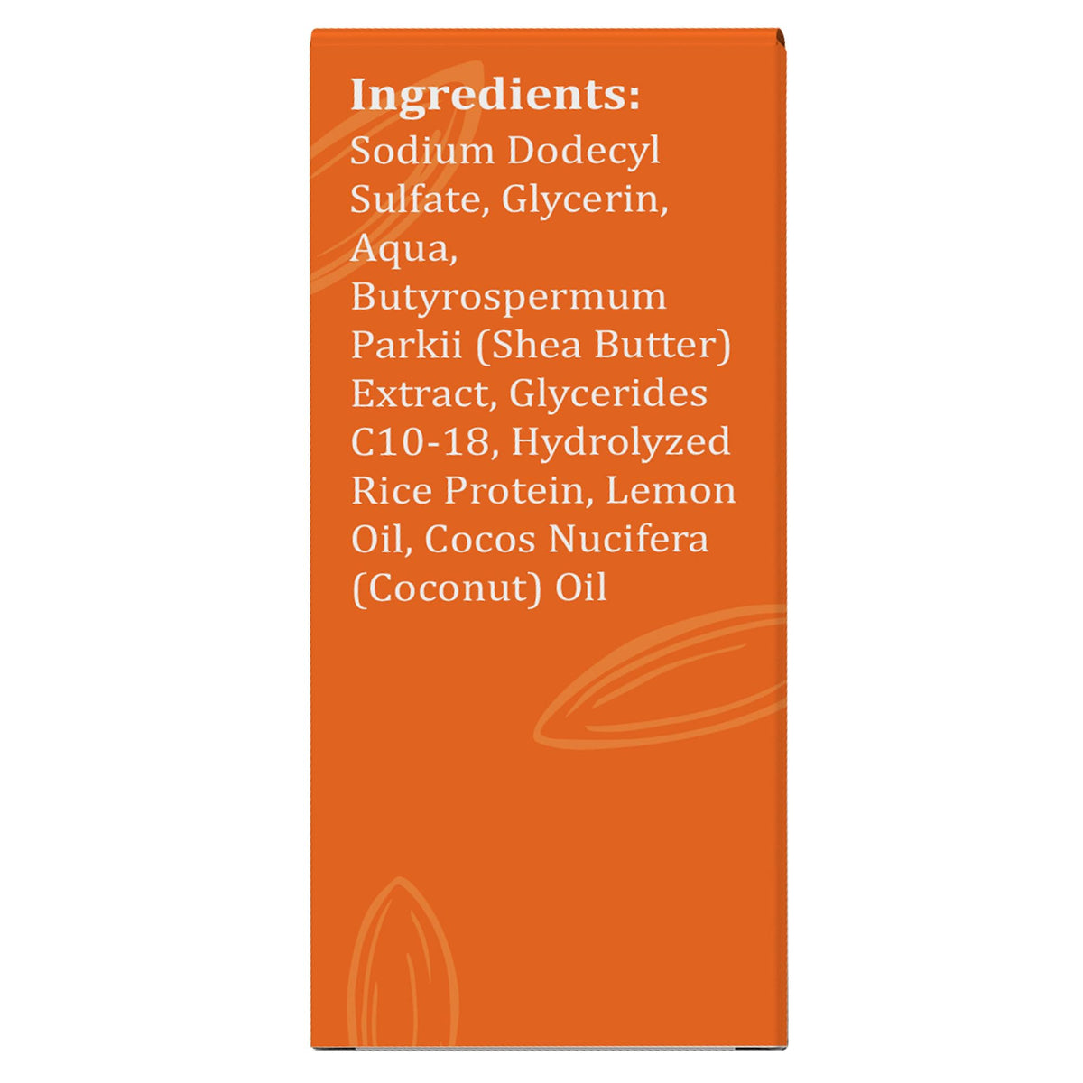 Ingredients: Sodium Dodecyl Sulfate, Glycerin, Water, Butyrospermum Parkii Shea Butter Extract, Cocoa Butter Substitute, Rice Water Extract, Coconut Oil