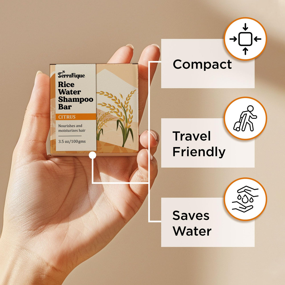 TERRAFIQUE Rice Water Shampoo Bar - Citrus Scent - Nourishing Shampoo with Cocoa Butter, Shea Butter for Hair Growth - 3.5 Oz / 100 G