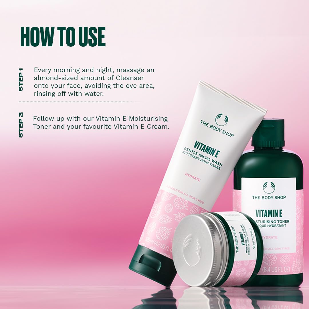 The Body Shop Vitamin E Gentle Facial Wash is a nourishing cleanser designed to gently remove impurities while leaving your skin feeling refreshed and hydrated. Ideal for daily use, this facial wash helps maintain a healthy complexion.